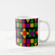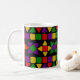 This mug has a Black History design of flowers and rows made from triangles and rectangles.