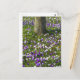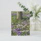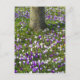 Flowers field crocuses in spring grass with tree postcard