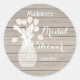 Flowers in Jar on Wood Bridal Shower Classic Round Sticker