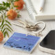 A watercolor painting of some lovely flowers under a crescent moon adorns this customizable keychain!