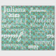 A fun and graphic typography design with a floral pattern. Repeated name in different font styles and sizes and colour flowers