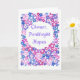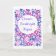 A pretty, flowery Birthday Card for a Sister, with 'Happy Birthday' in Welsh, surrounded by pink, blue and mauve flowers; from a handpainted paper collage by Judy Adamson.