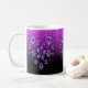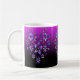 Lovely small flowers in different sizes, shapes and colours that vary in tones of blue and purple on a purple and black gradient background.