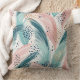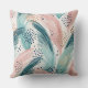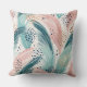 An expressive abstract pattern throw pillow featuring sweeping brushstrokes in shades of pink, teal, and dark blue, flowing organically across a softly speckled background. Accented with clusters of dark blue and metallic gold dots, this design blends bold movement with refined texture, creating a dynamic and artistic aesthetic. Perfect for modern creatives, art lovers, and those drawn to fluid, contemporary elegance.