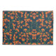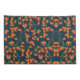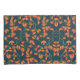Seamless pattern of vibrant orange flowers with green stems on a dark blue background. The design is dynamic and lively, with a sense of flow.