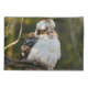 The Laughing Kookaburra is instantly recognisable in both plumage and voice. It is generally off-white below, faintly barred with dark brown, and brown on the back and wings. The tail is more rufous, broadly barred with black. There is a conspicuous dark brown eye-stripe through the face. It is one of the larger members of the kingfisher family.