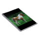 This little pony is so gosh darn cute he looks like a living doll! Multicolored in white and brown markings. He's a dartmoor pony and can be seen standing in bright green grass with some trees and bushes in the background. His hair looks so soft and fluffy and he has a cute little grey tail. Pony fans will surely love this.