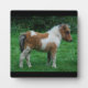 This little pony is so gosh darn cute he looks like a living doll! Multicolored in white and brown markings. He's a dartmoor pony and can be seen standing in bright green grass with some trees and bushes in the background. His hair looks so soft and fluffy and he has a cute little grey tail. Pony fans will surely love this.