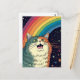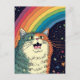 An adorable fluffy cat in space with a rainbow in a retro style AI generated art