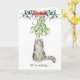 Fluffy Cat Under the Mistletoe Christmas Card