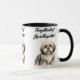 Fluffy Charm: Light Brown, Grey, and White Dog Mug