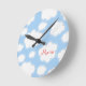 Blue and white fluffy clouds personalized wall clock with custom name text.