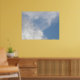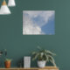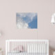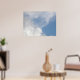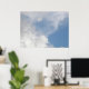 This beautiful print features a photograph of a gathering of fluffy white clouds capturing the beauty and power of the weather. The wispy clouds are a mixture of white and pale grey shades captured against the backdrop of a beautiful pale blue sky.