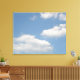 This awesome canvas print features a photograph of some fluffy white cumulus clouds floating leisurely across a beautiful blue sky.