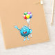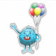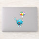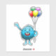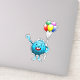 The little blue monster Fluffy & Cute with balloons on a custom cut vinyl sticker.