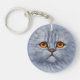 Fluffy Grey Tabby Cat Kitten Face Keychain