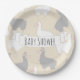 Adorable grey and white llamas themed baby shower paper plates with a neutral beige background colour.