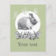 Pencil drawing.Artist by Zolotareva.Fluffy the rabbit.The drawing a pencil of a hare and flowers of camomiles with application of a light green background and vector butterflies.You can add name or custom text.
