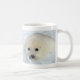 An utterly adorable photograph of a harp seal pup dusted with snow.