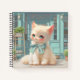 Fluffy Kitten with Blue Bow at Pastry Shop Notebook