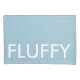 Pillowcase has large text that reads fluffy. Background colour and text are customizable
