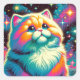 Fluffy Orange Pink Cat in Space Square Sticker