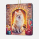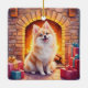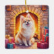 Fluffy Pomeranian Cozy Christmas Fireplace Dog Art Ceramic Ornament