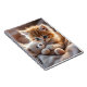 Cute, fluffy red kitten playing with a tiny, soft teddy bear on a cozy, warm blanket. Pretty colors in orange, beige, white. Adorable design for any child and cat lovers!