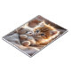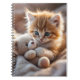Fluffy red kitten playing with a tiny teddy bear, notebook