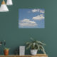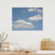 This beautiful print features a photograph of some fluffy white cumulus clouds floating leisurely across a beautiful blue sky. This print will look so pretty on your wall you will feel like you have a slice of blue sky in your home all the time.
