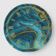 This uniquely designed wall clock is perfect for adding a contemporary touch to your home decor. Adorned with golden Roman numerals set against a distinctive blue and gold fluid art pattern background ensures this timepiece stands out at all times.