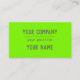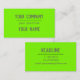 Business card in fluorescent green solid colour background and bold lettering .Simple and trendy design by Alma Wad .Personalize both sides now .It comes 100 in a pack .