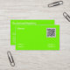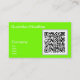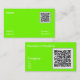 Business card in fluorescent green solid colour background and grey fonts . Simple and trendy design by Alma Wad .It has QR code on both sides . Personalize it with your own codes and business details .It comes 100 in a pack .