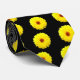 Lots of brightly coloured fluorescent yellow marigold flowers on a black tie.
