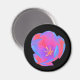 This pretty magnet features a beautiful photograph of a tulip. The photograph has been artificially coloured resulting in a fluorescent tulip. The outer petals are coloured with shades of blue and red, while the inner petals show shades of pink and purple. The very centre of the flower is bright yellow. The simple black background shows off the stunning beauty of this flower.
