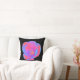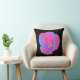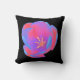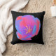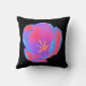 This awesome pillow ures a beautiful photograph of a tulip. The photograph has been artificially coloured resulting in a fluorescent tulip. The outer petals are coloured with shades of blue and red, while the inner petals show shades of pink and purple. The very centre of the flower is bright yellow. The simple black background shows off the stunning beauty of this flower.
