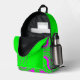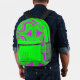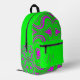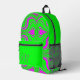 Fluorescent waves and fusions , psychedelic , modern pattern - Alma Wad's original design in bright green and magenta printed on a backpack . Add your monogram right now .