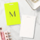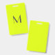 Badge with a vibrant shade of yellow called "fluorescent yellow" . It features a solid-colour background and a dark grey font. Sleek design by Alma Wad Personalize it with your monogram now. You can add more details like name /logo /position etc.