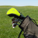 Golf Head Cover with fluorescent yellow solid colour background and grey font .Simple and trendy design by Alma Wad .Personalize it with your monogram now ..