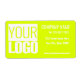 Shipping labels in fluorescent yellow solid colour background and a bold cover logo on the left . Personalize it now . Modern and trendy design by Alma Wad .It comes 8 labels per sheet.
