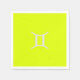 Paper Napkins with fluorescent yellow solid colour background and light grey zodiac symbol of the Gemini .Simple and trendy design by Alma Wad .