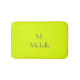 Bath Mat in fluorescent yellow (#DFFF00) solid colour background and and grey fonts .Simple and trendy design by Alma Wad .Personalize it with your name and monogram now .