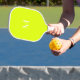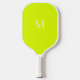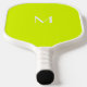 Pickleball Paddle with fluorescent yellow solid colour background and grey font .Simple and trendy design by Alma Wad .Personalize it with your monogram now ..Printed both sides .