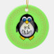 Green holiday Christmas ornament with cute music penguin and Got Flute band quote. Gold filigree border.