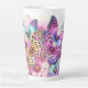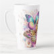 This enchanting latte mug features a vibrant and whimsical design of butterflies and flowers. The butterflies are adorned with a mix of colourful patterns, including leopard spots and gradient hues, creating a lively and eye-catching effect. The background is filled with soft, pastel flowers that complement the vivid butterfly wings, making this mug a delightful and charming addition to any coffee lover's collection. Perfect for adding a touch of nature-inspired beauty to your morning routine.