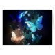 Fabulous, glowing, blue and yellow, night butterfly on dark background.