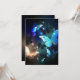 Fabulous, glowing, blue and yellow, night butterfly on dark background.