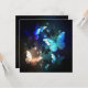 Fabulous, glowing, blue and yellow, night butterfly on dark background.