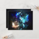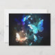 Fabulous, glowing, blue and yellow, night butterfly on dark background.