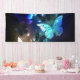 Fabulous, glowing, blue and yellow, night butterfly on dark background.